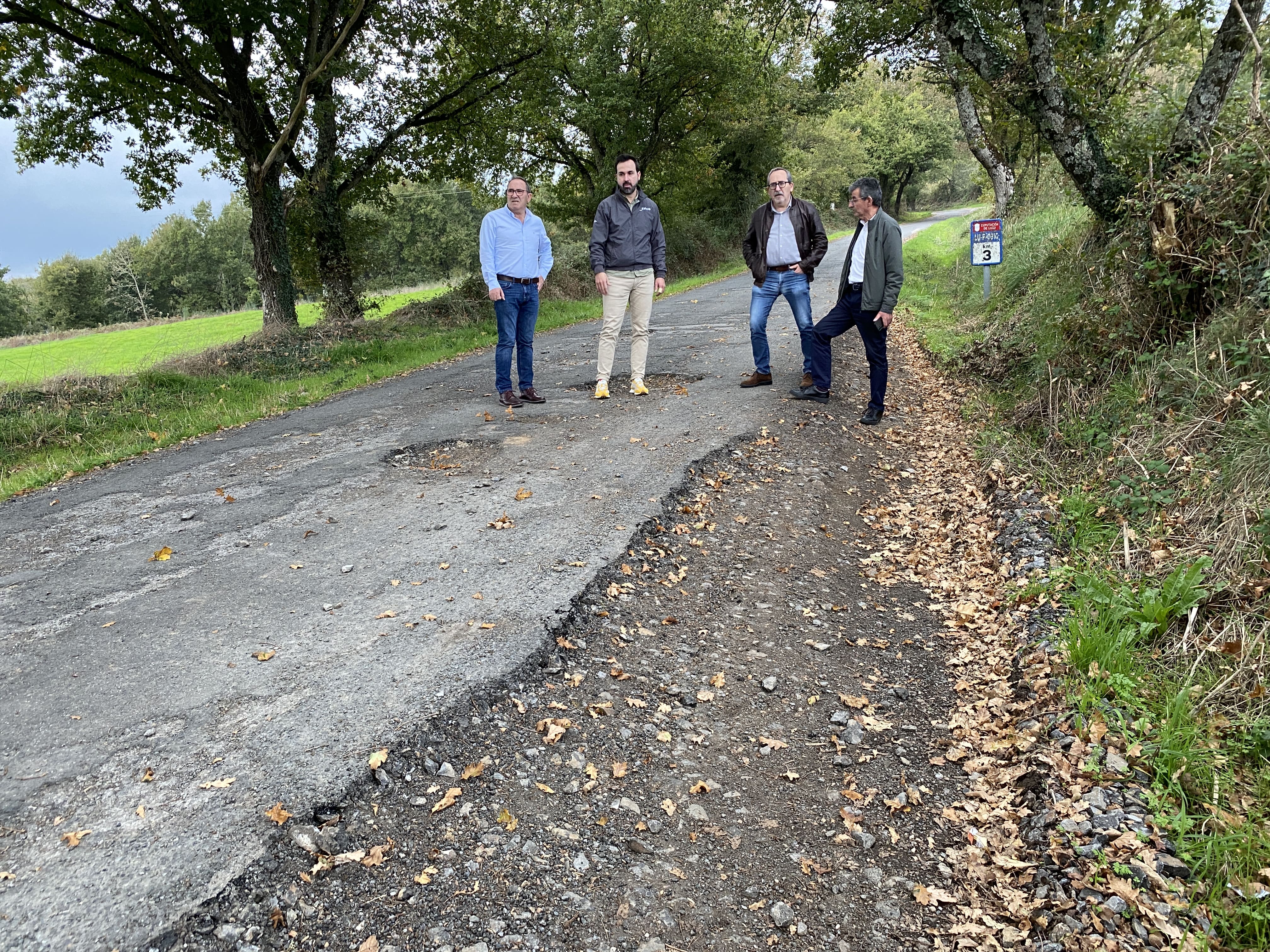 El portavoz Antonio Ameijide pone como ejemplo del «nefasto estado» de las vías provinciales la LU-P-0910, en Bóveda. «Hai puntos nos que non hai máis dun metro de asfalto de ancho», argumenta.