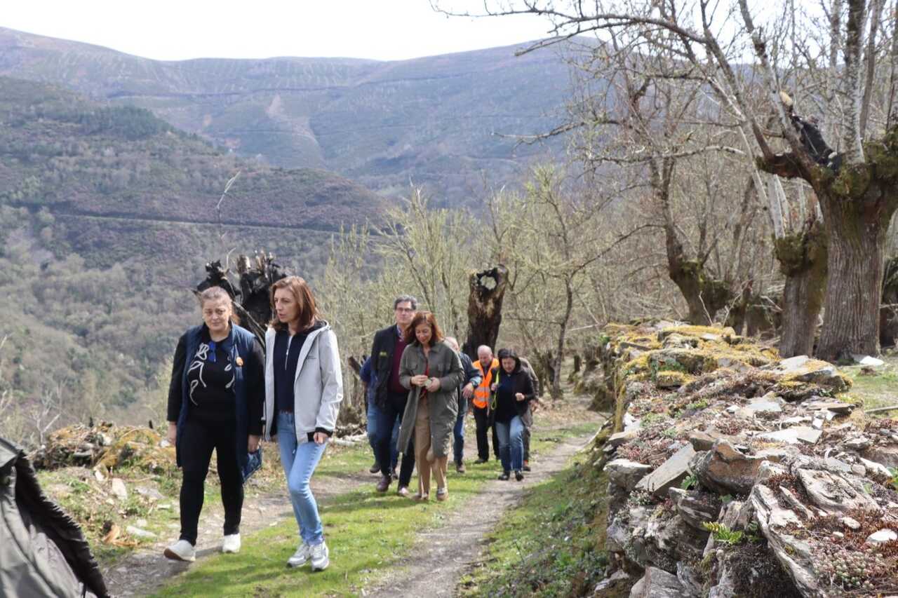 Ángeles Vázquez, conselleira de Medio Ambiente e Cambio Climático, visitó euno de los puntos en los que la Xunta está ejecutando actuaciones de regeneración en la Serra do Courel tras los incendios forestales de julio de 2022. El paquete de intervenciones cuenta con una inversión total de 802.546 euros y forma parte de una planificación plurianual orientada a la recuperación integral de este espacio natural.