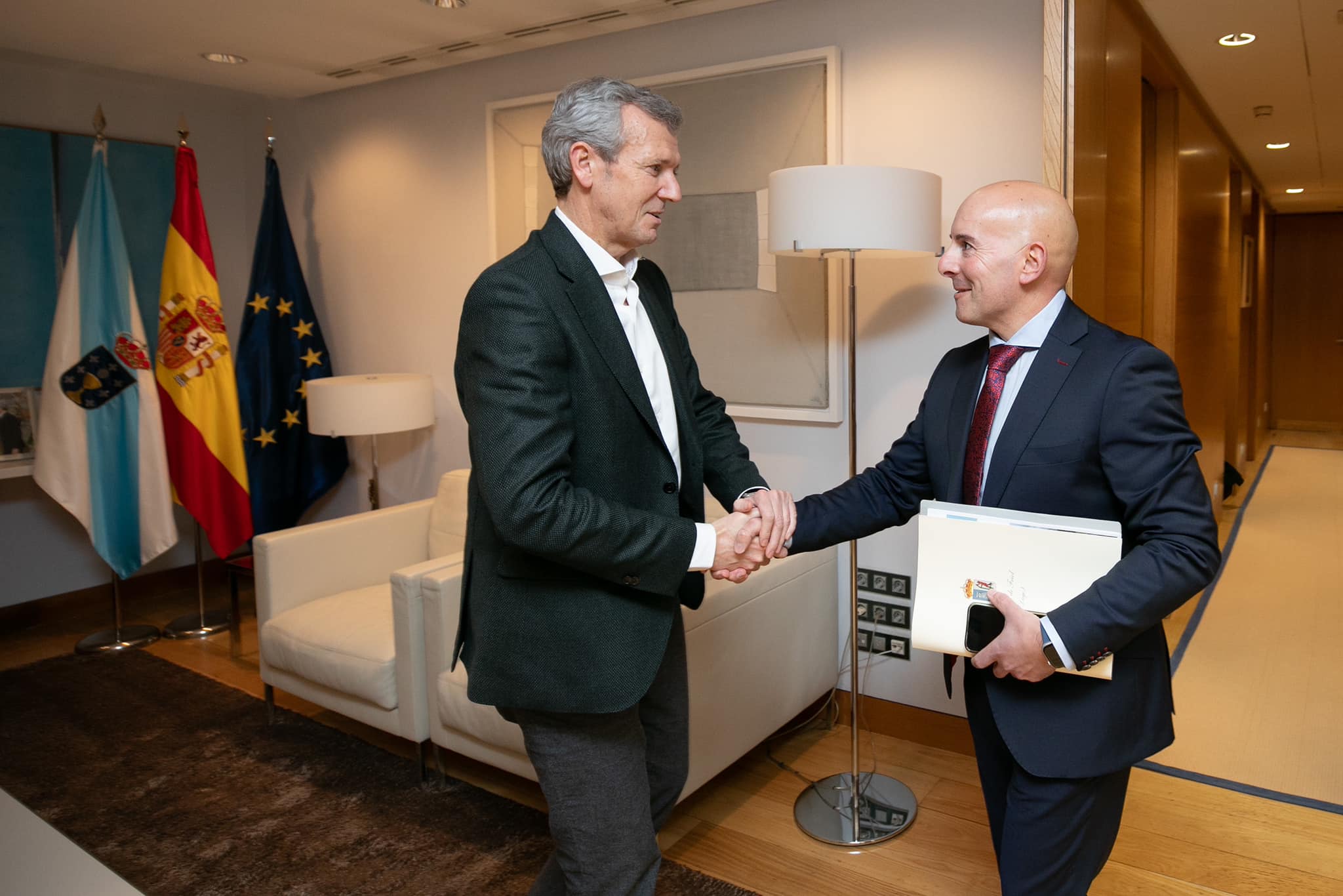 José Ángel Santos, alcalde de Friol, mantuvo una reunión con Alfonso Rueda, presidente de la Xunta, en la que se acordaron avances estratégicos para el Concello. Estos fueron, entre otros, la línea para que continúe incrementándose la población, el asentamiento del tejido empresarial y la dinamización de los sectores productivos.