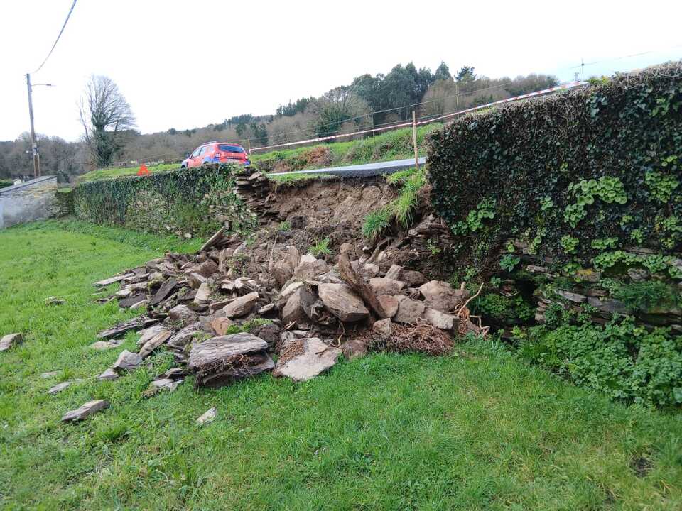 La Diputación prevé actuar de forma inmediata para reparar un muro de la carretera provincial LU-P-2913, que conecta los concellos de Lugo y Guntín entre Coeses y Terlama, y que se derrumbó a causa de las lluvias. La institución indica que los trabajos para reconstruir el muro comenzarán la próxima semana a la altura del punto kilométrico 5,245, en la parroquia lucense de Piñeiro, y que la actuación consistirá en levantar de nuevo el muro de contención con perpiaño.