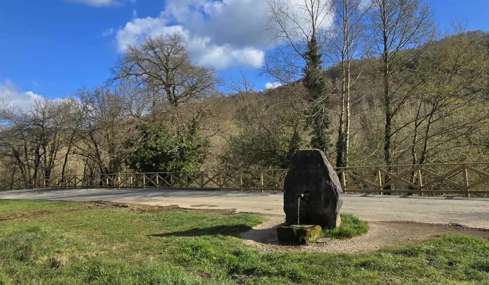 Otra de las actuaciones que se están llevando a cabo es la de la instalación de vallas de madera en el área de descanso de la fuente de Cedrón, en la LU-636.