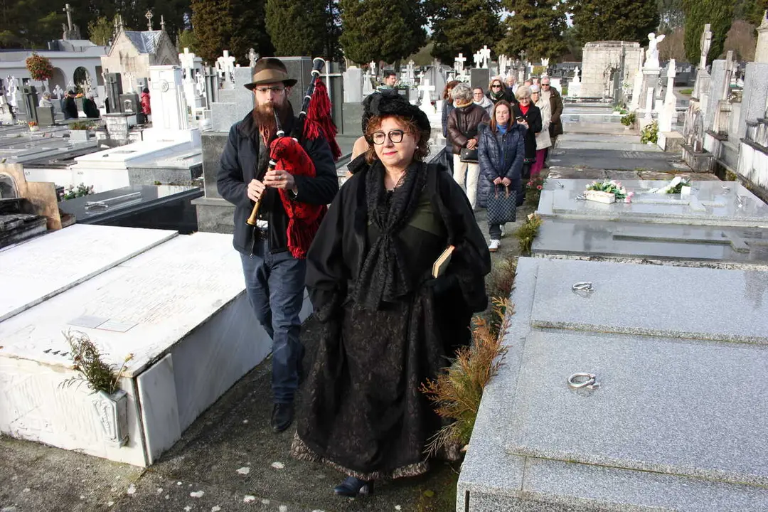 El grupo de teatro Achádego participó en una nueva visita teatralizada en el cementerio municipal de San Froilán para recordar y poner en valor la historia de diferentes personajes vinculados a la ciudad de Lugo