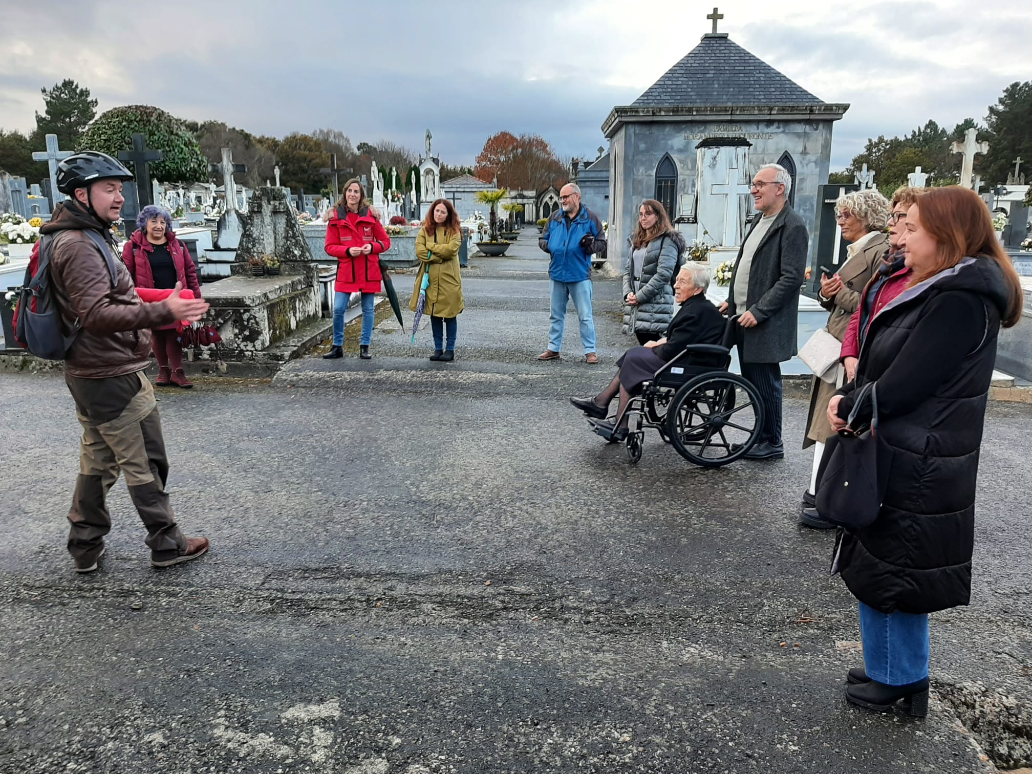 Cristina López, concelleira de Participación e Servizos para a Veciñanza, participó en las visitas teatralizadas al cementerio municipal, que, en esta ocasión, corrió a cargo de Achádego Teatro. «É unha actividade que goza en cada edición da participación por parte das veciñas e veciños, que deciden realizar unha visita diferente ao Cemiterio Municipal», manifestó López.