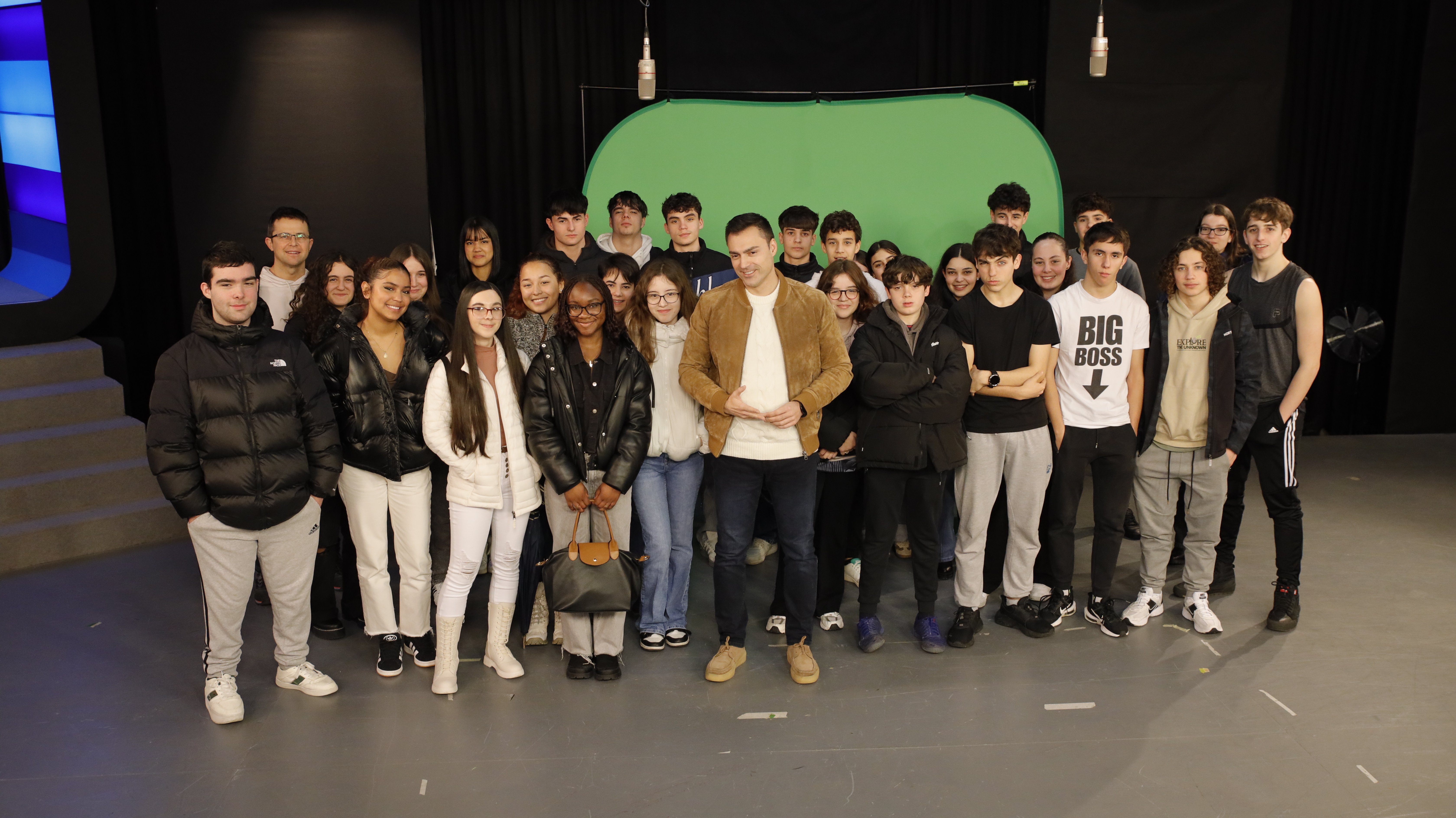 Pablo Rivera, diputado de Promoción Económica e Social, recibió a un grupo de 29 alumnos del IES Leiras Pulpeiro que visitaron el Servizo de Audiovisuais de la Diputación. Recorrieron de una manera lúdica y práctica el archivo, la redacción, la sala de realización y los platós.