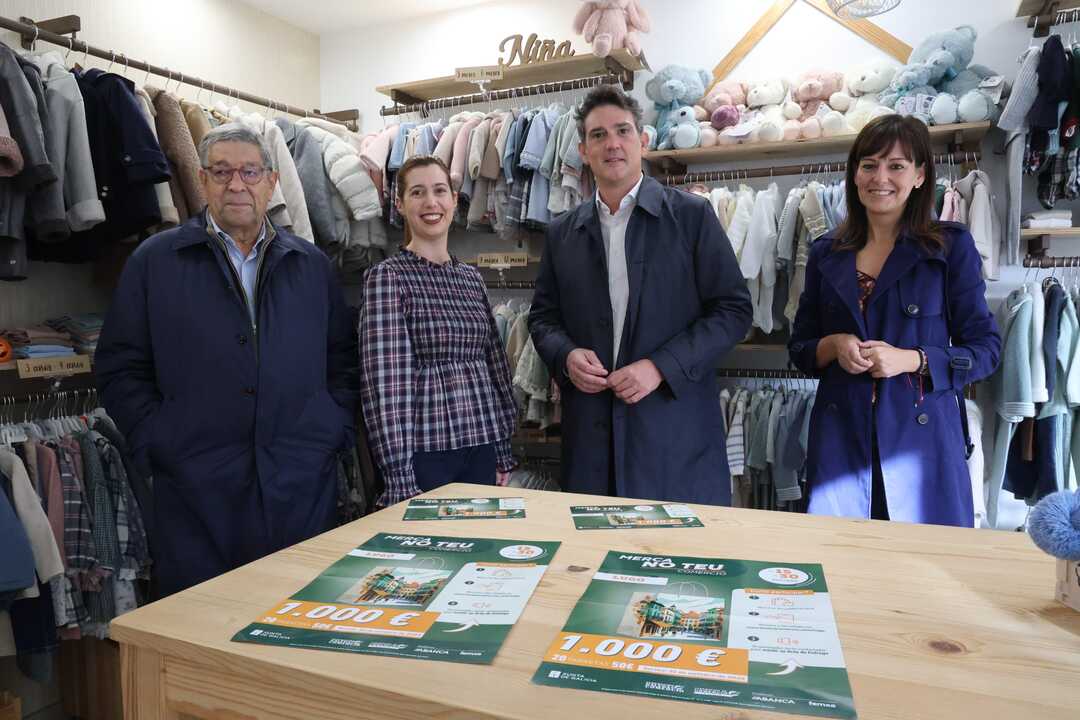 Arias y José María Seijas, presidente de la Federación Galega de Comercio, visitaron varios establecimientos de la capital —Bicos de Mami, Lencería Lis y Óptica De la Torre— para dar a conocer el programa, que busca fomentar el consumo local, premiar la fidelidad de los clientes y poner en valor el papel de los pequeños comercios. La campaña repartirá 1.000 euros en premios, distribuidos en veinte tarjetas regalo de 50 euros, que deberán utilizarse para realizar nuevas compras en negocios de proximidad antes del 31 de diciembre.