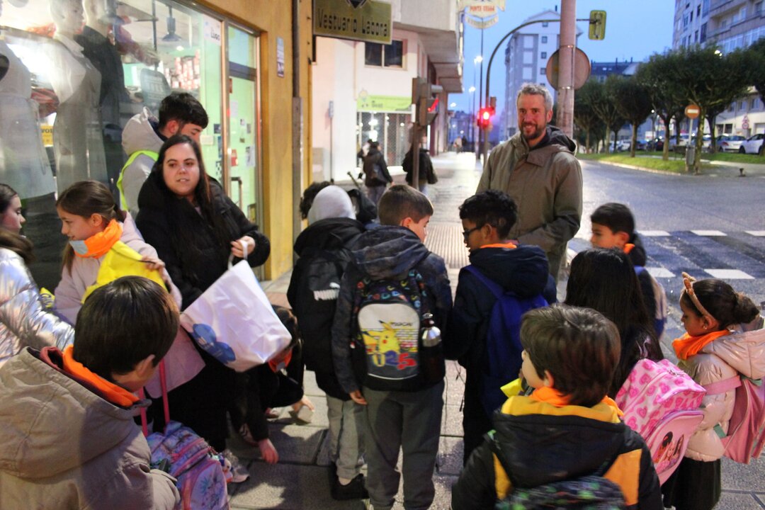 Rubén Arroxo, teniente de alcalde del Concello de Lugo, e Iria Buide, concelleira de Educación e Difusión do Coñecemento, participaron en el vieiro escolar del CEIP As Mercedes junto a las niñas y niños que forman parte del proyecto «Camiño ás Aulas», después de que el servicio se pusiera en marcha en este centro a la vuelta de las vacaciones de Navidad.
