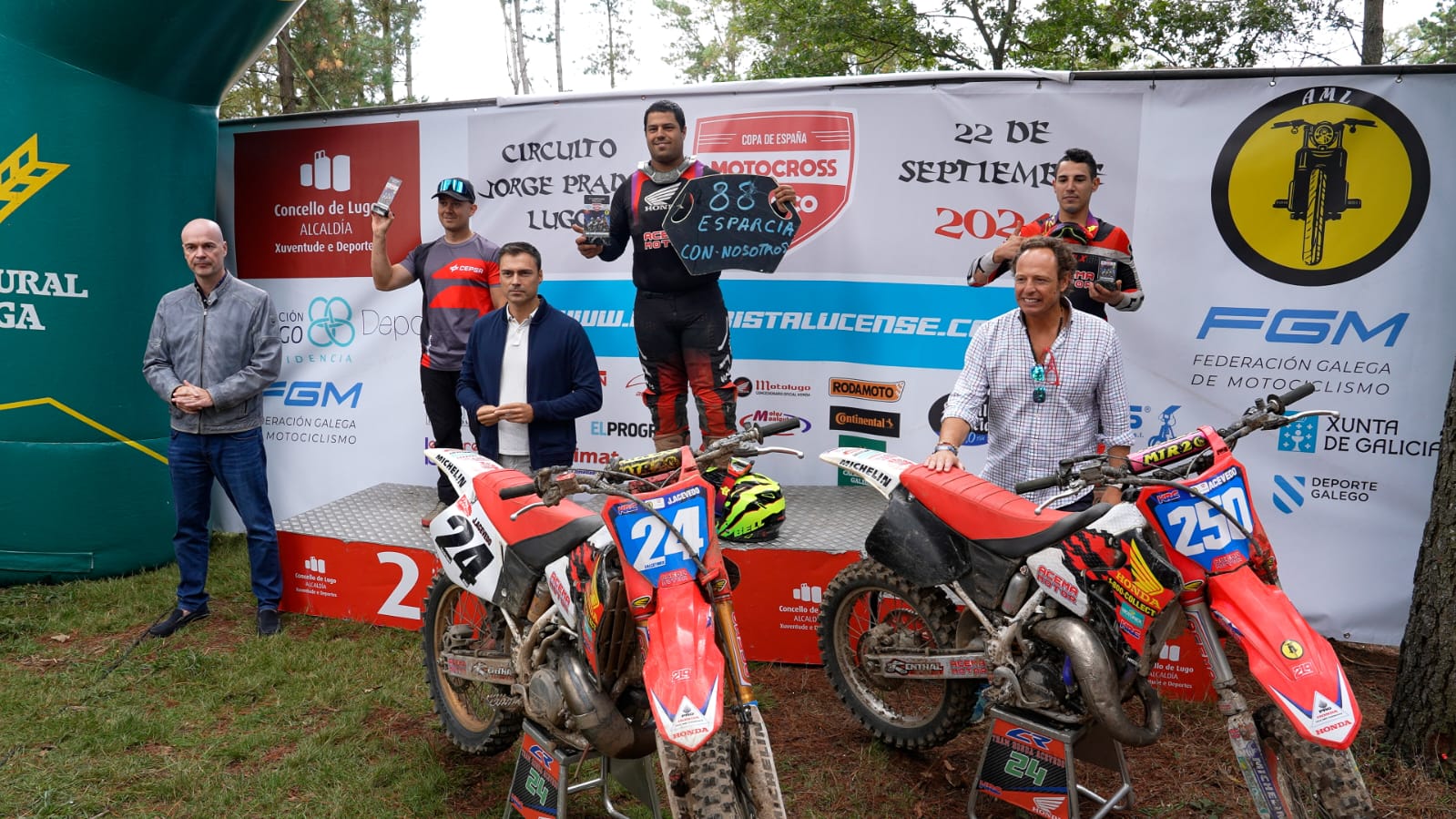 El diputado provincial Pablo Rivera participó hoy en la entrega de trofeos de la Copa de España de motocrós clásico, que se celebró en el circuito Jorge Prado. Participaron 50 pilotos en una prueba que forma parte del calendario nacional y que potencia la presencia de Lugo en esta modalidad deportiva.