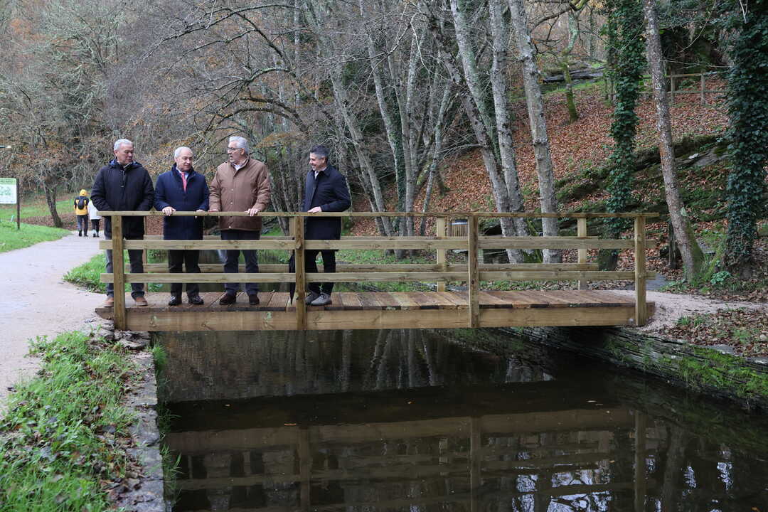 José Tomé, presidente de la Diputación, y Miguel Fernández, alcalde de Lugo, supervisaron en el río Rato el resultado de las obras de restauración del paseo y su entorno, afectado gravemente en abril por la borrasca Olivier. La institución provincial destinó 175.286,07 euros del fondo de contingencia a la reparación, ejecutada por TRAGSA tras la elaboración de un informe técnico que evaluó los daños, definió las actuaciones prioritarias y permitió tramitar los permisos necesarios.