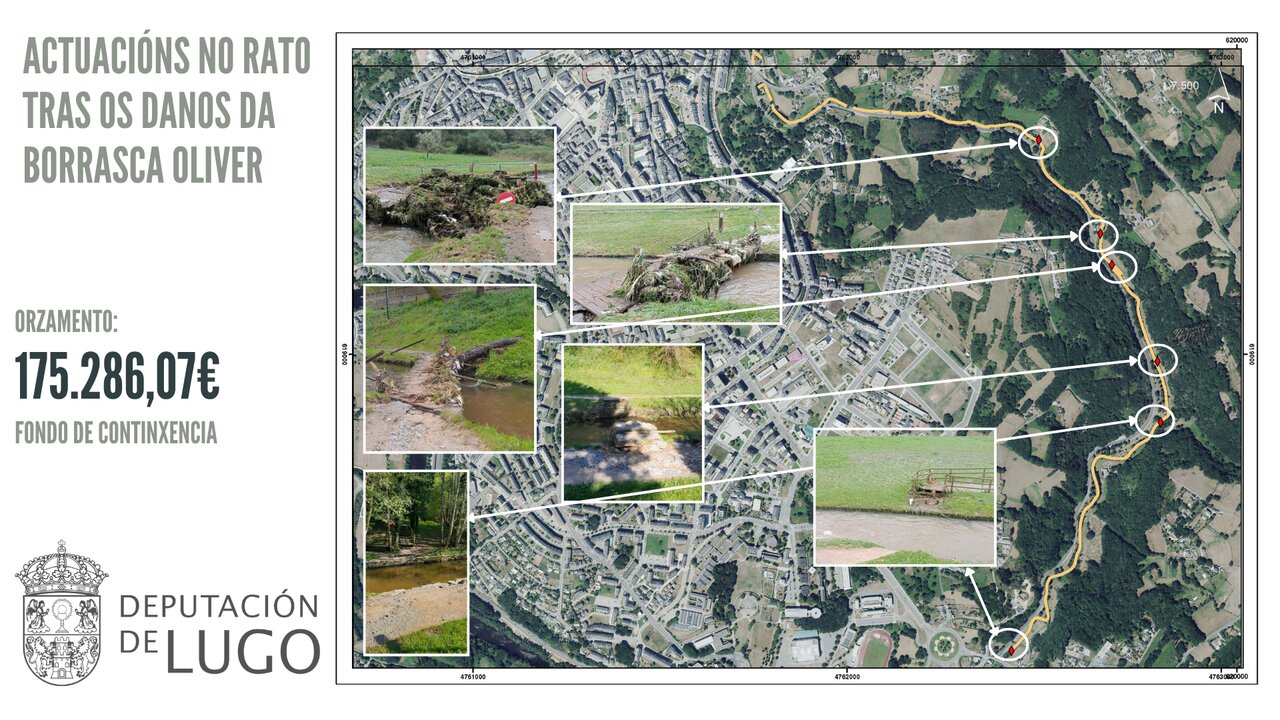 José Tomé, presidente de la Diputación de Lugo, ha anunciado una inversión de 175.286 euros para la restauración del entorno del río Rato, dañado tras el «episodio meteorolóxico extremo» del pasado 11 de abril. Las crecidas de los ríos Rato y Fervedoira provocaron destrozos en caminos, pasarelas, escolleras y mobiliario urbano en una zona verde que forma parte de la Reserva da Biosfera Terras do Miño.