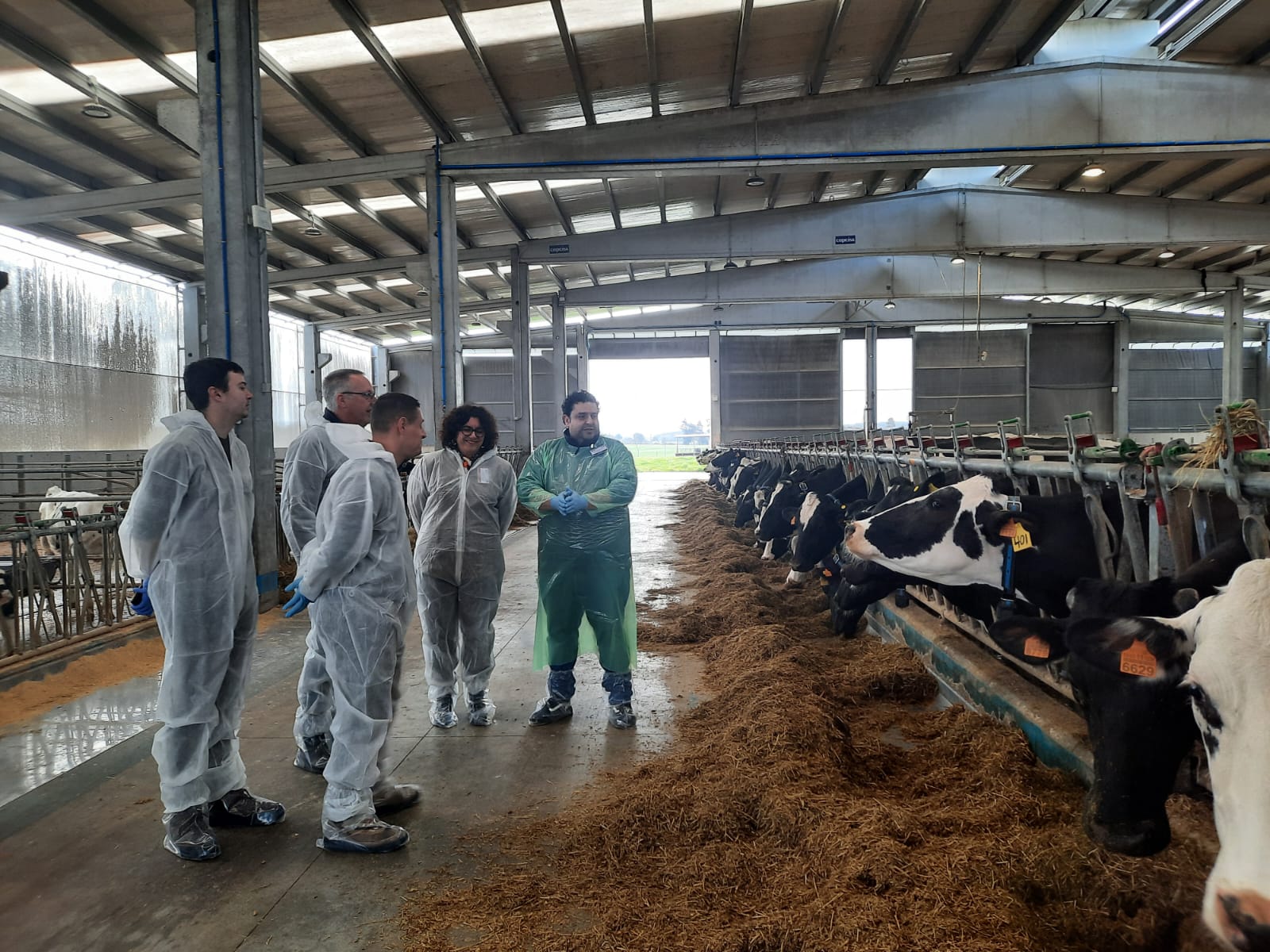 Sonia Verdes, directora del centro, le mostró al equipo el funcionamiento de la granja experimental de leche y le presentó el proyecto de granja de porco celta que se creará en el recinto.