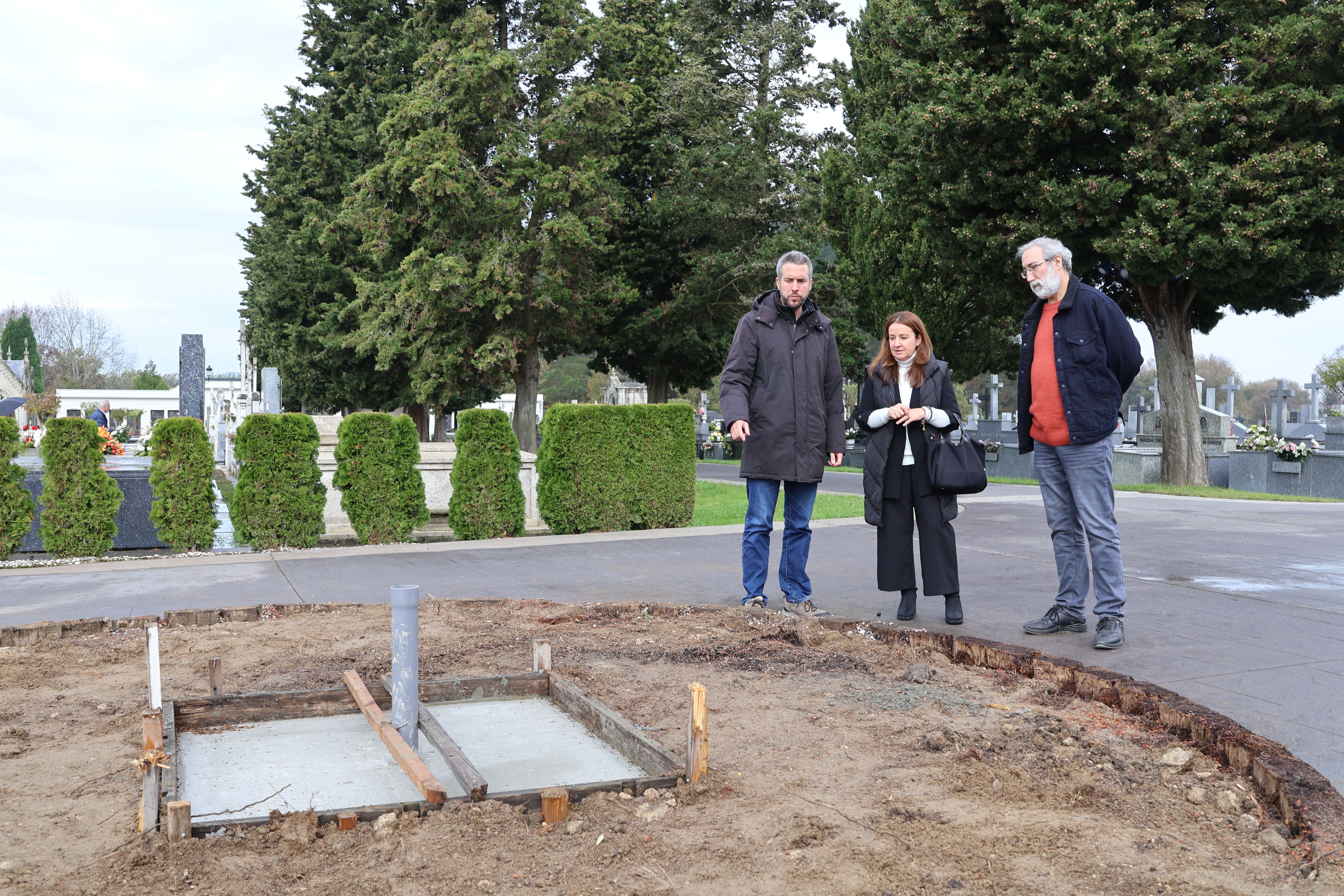 Rubén Arroxo, teniente de alcaldesa de Lugo, y la concelleira Cristina López visitaron el emplazamiento del cementerio en el que se colocará una escultura en memoria de las víctimas de la Guerra Civil. Obra de Álvaro de la Vega, será presentada el jueves 21 a las cinco de la tarde.