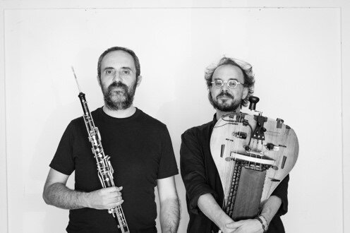 Germán Díaz, nacido en Valladolid en 1978 y afincado en Lugo, es uno de los principales revitalizadores de la zanfona en Europa, con una trayectoria que abarca conciertos en numerosos países y la edición de múltiples trabajos como solista y en colaboración. Benxamín Otero, natural de Lalín, compagina su labor como intérprete y compositor con la docencia, y ha colaborado con formaciones y artistas de referencia en Galicia y en el ámbito estatal.