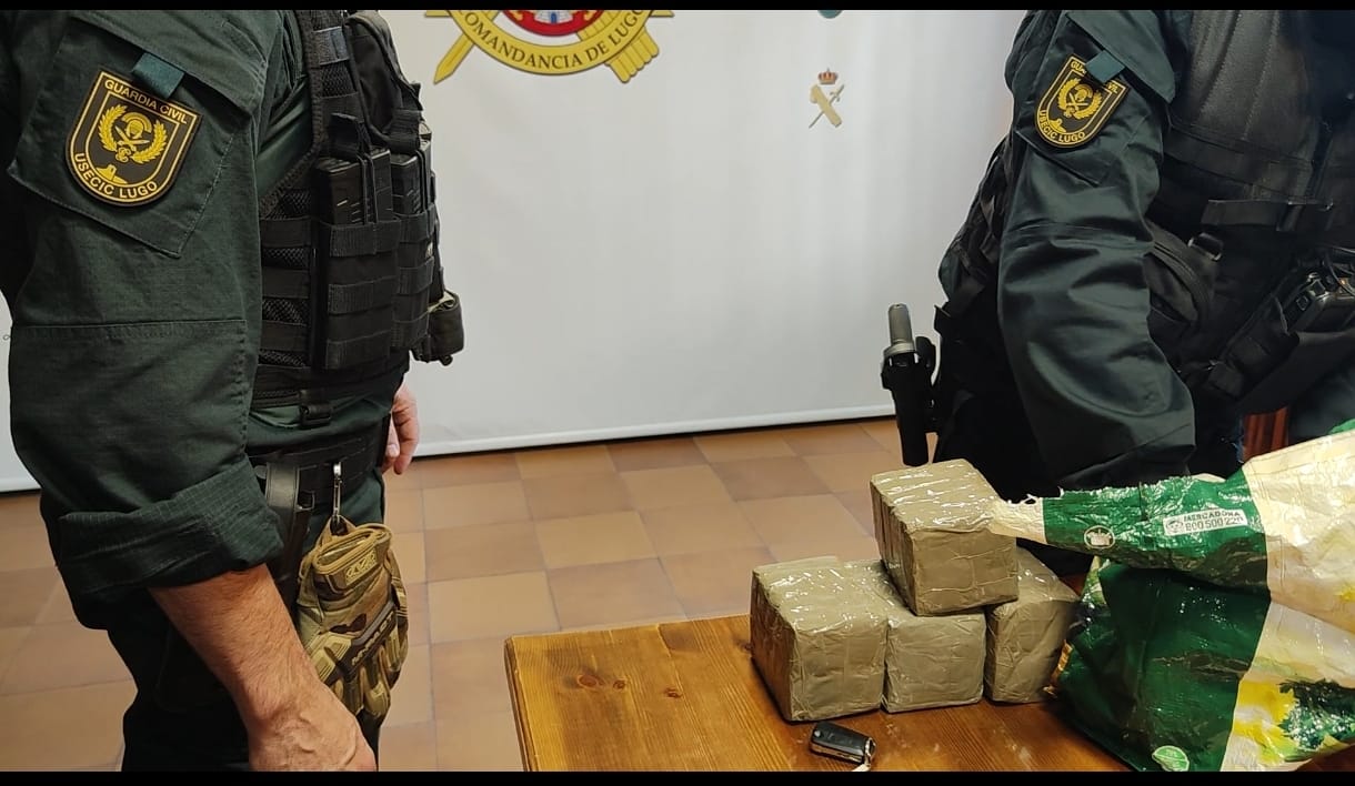Agentes de seguridad ciudadana de la Guardia Civil de Lugo detuvo a un vecino de A Coruña de 31 años a la altura del punto kilométrico 500 con cinco kilos de supuesto hachís oculto en el interior de su vehículo. La intervención tuvo lugar el viernes en el marco de un operativo policial en prevención de la seguridad ciudadana. El conductor mostró «un cierto nerviosismo» en su comportamiento.