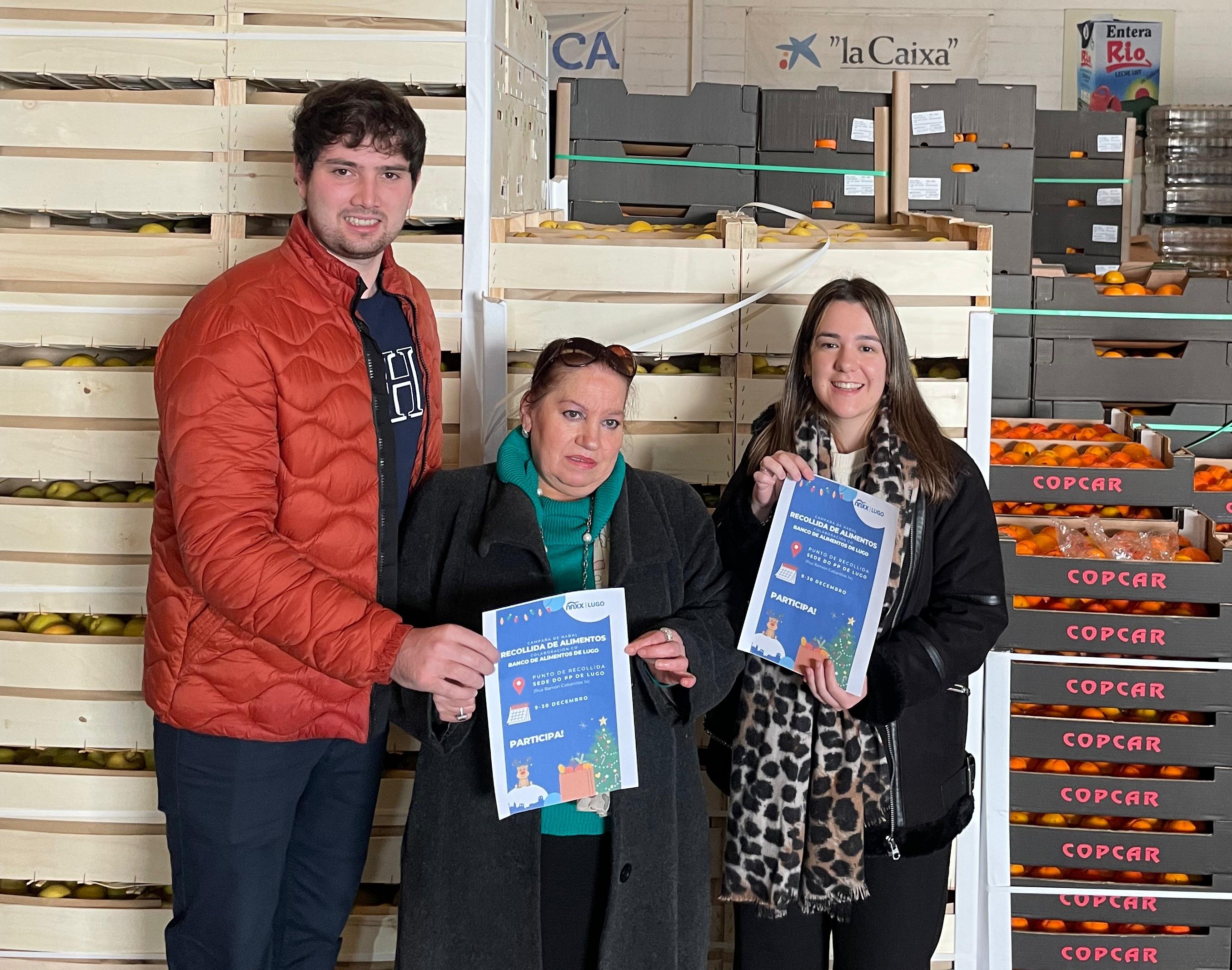 La iniciativa fue presentada por Miguel Gallego, presidente provincial de NNXX; Cristina Fernández, secretaria xeral del Banco de Alimentos; y Amadora Núñez, presidenta del Banco de Alimentos.