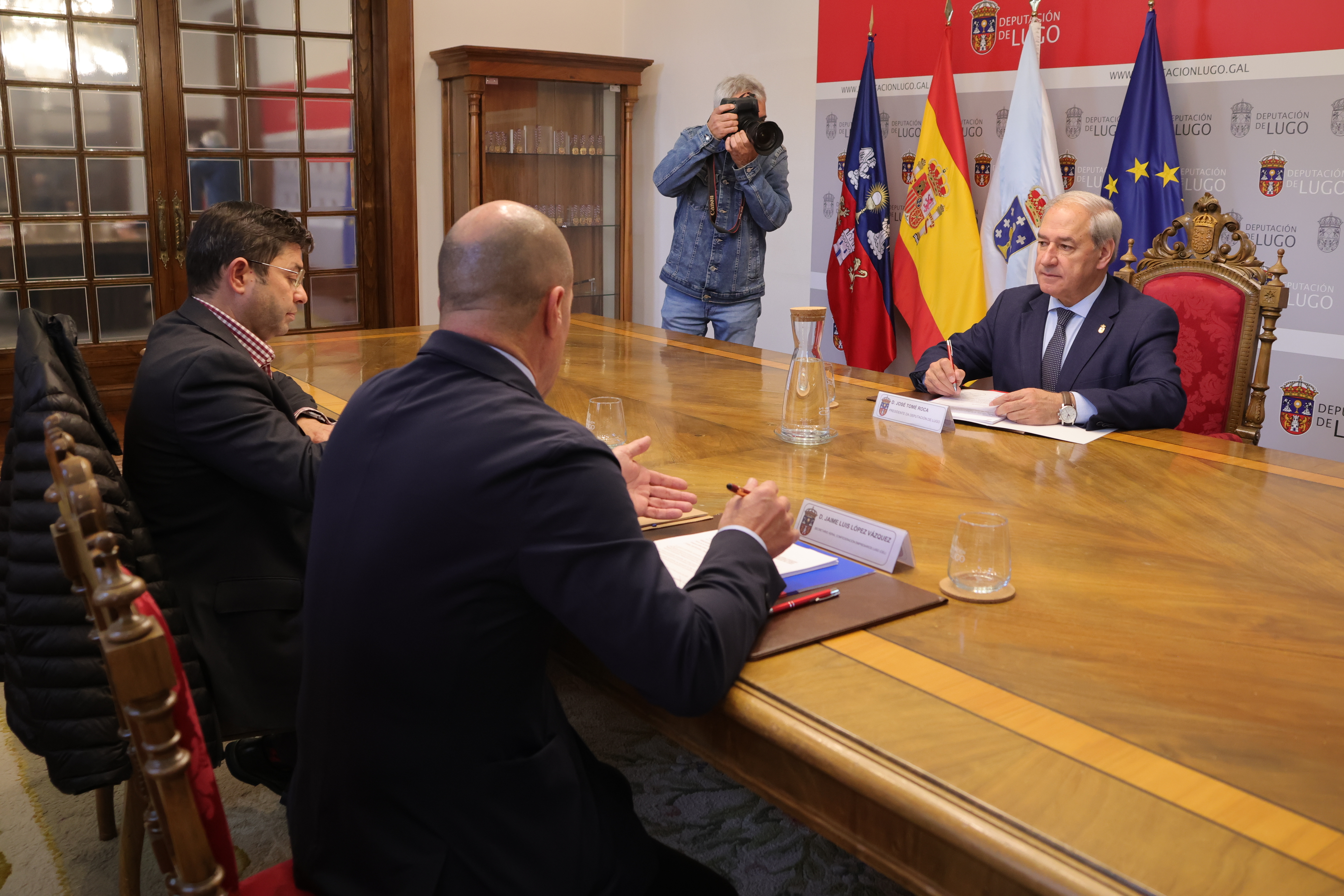 José Tomé, presidente de la Diputación de Lugo, participó en la reunión del patronato de la Fundación Universitaria Campus de Lugo junto con Francisco Fraga, vicerrector de Organización Académica del Campus, y Jaime López, secretario xeral de la CEL. Fueron designados los cargos del Patronato, con el nombramiento de un miembro de la Cámara de Comercio de Lugo. Además, se analizaron y aprobaron las cuentas correspondientes al curso 2023-2024, en el que la Diputación concedió una ayuda de 170.000 euros.