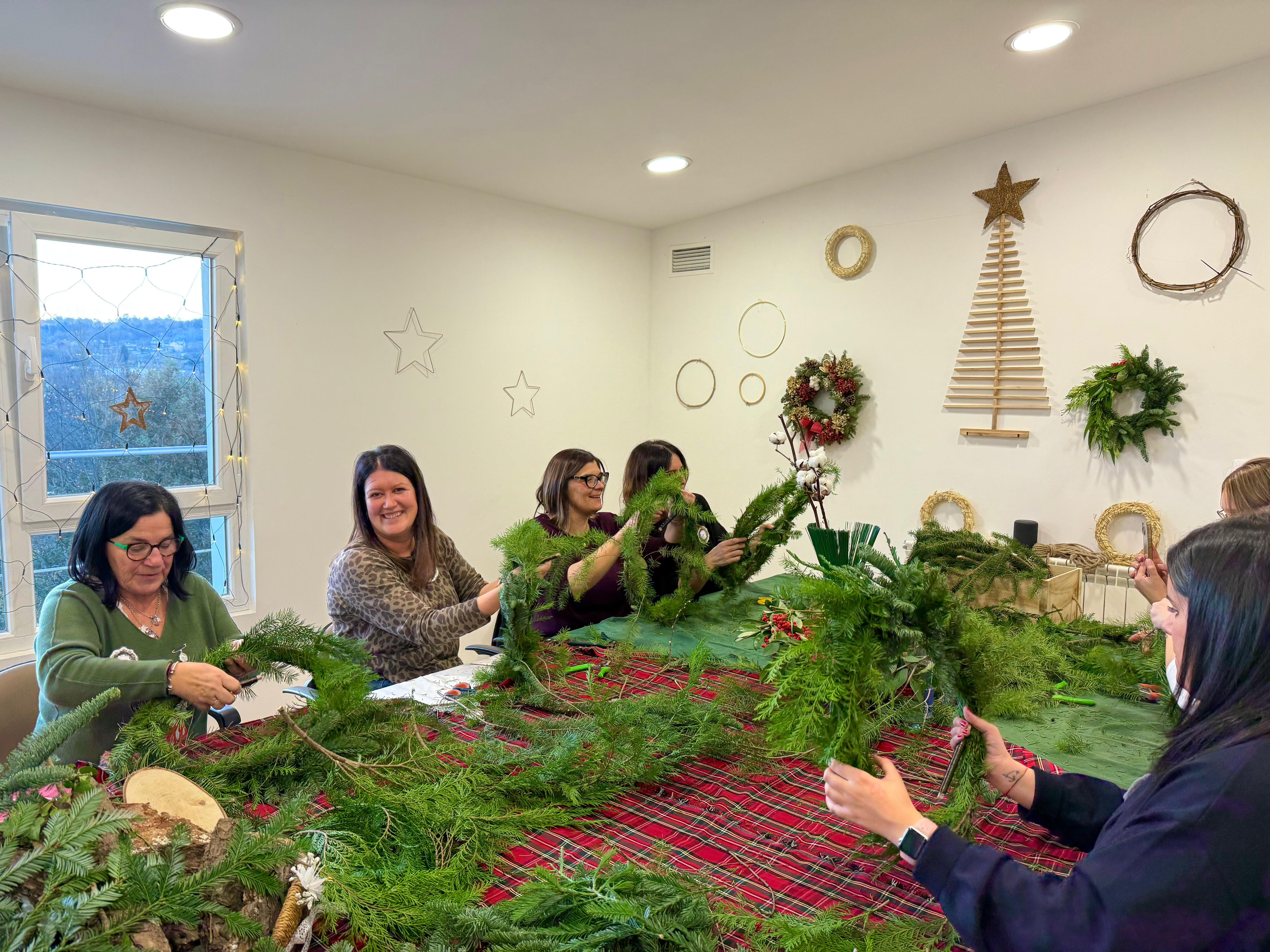 Taller navideño de coronas en la UNED de Lugo
