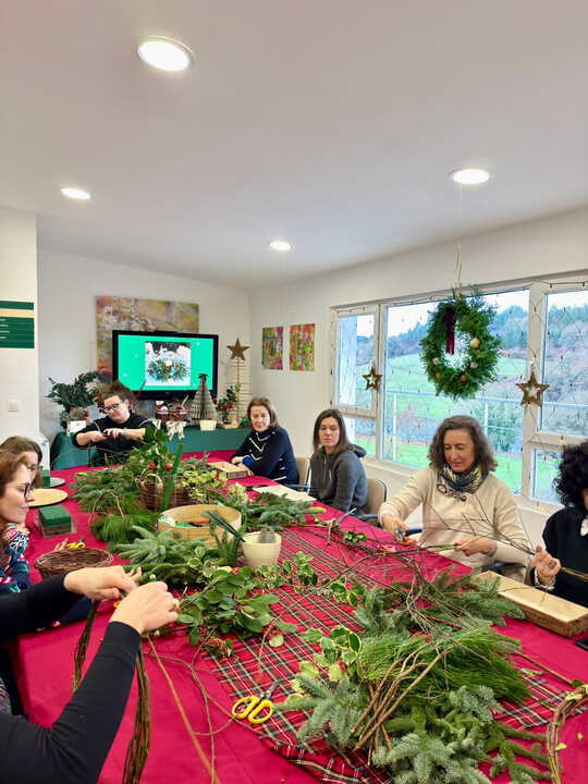 La UNED de Lugo celebró ayer la primera sesión del taller «Navidad sostenible. Un taller de coronas con elementos naturales», que se desarrolló con el aforo completo en la sede del Centro Asociado. La actividad forma parte del proyecto #LugoNaturalMente y está organizada en colaboración con Fina Freire Lenza, responsable de Arte Floral Rabel.