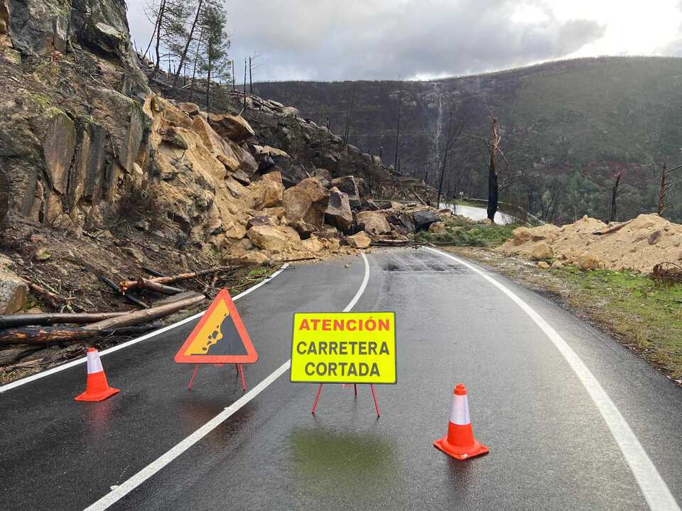 La Diputación informó del corte al tráfico de la carretera provincial LU-P-4103 a su paso por Pantón como consecuencia del derrumbe de tierra de una ladera provocado por las intensas lluvias registradas en los últimos días. El desprendimiento se produjo en el kilómetro 12 de esta vía, que comunica Ferreira de Pantón con el embalse de Santo Estevo, lo que obligó a interrumpir la circulación para garantizar la seguridad de los usuarios.