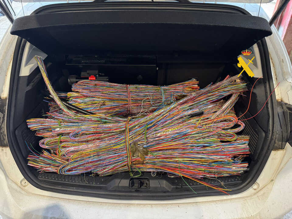 La Guardia Civil ha detenido en Sarria a dos personas como presuntos autores de la sustracción de cableado de cobre en varios puntos del sur de la provincia de Lugo. La investigación permitió localizar cable telefónico robado que se encontraba oculto entre la maleza, ya pelado y empaquetado para su posterior transporte.