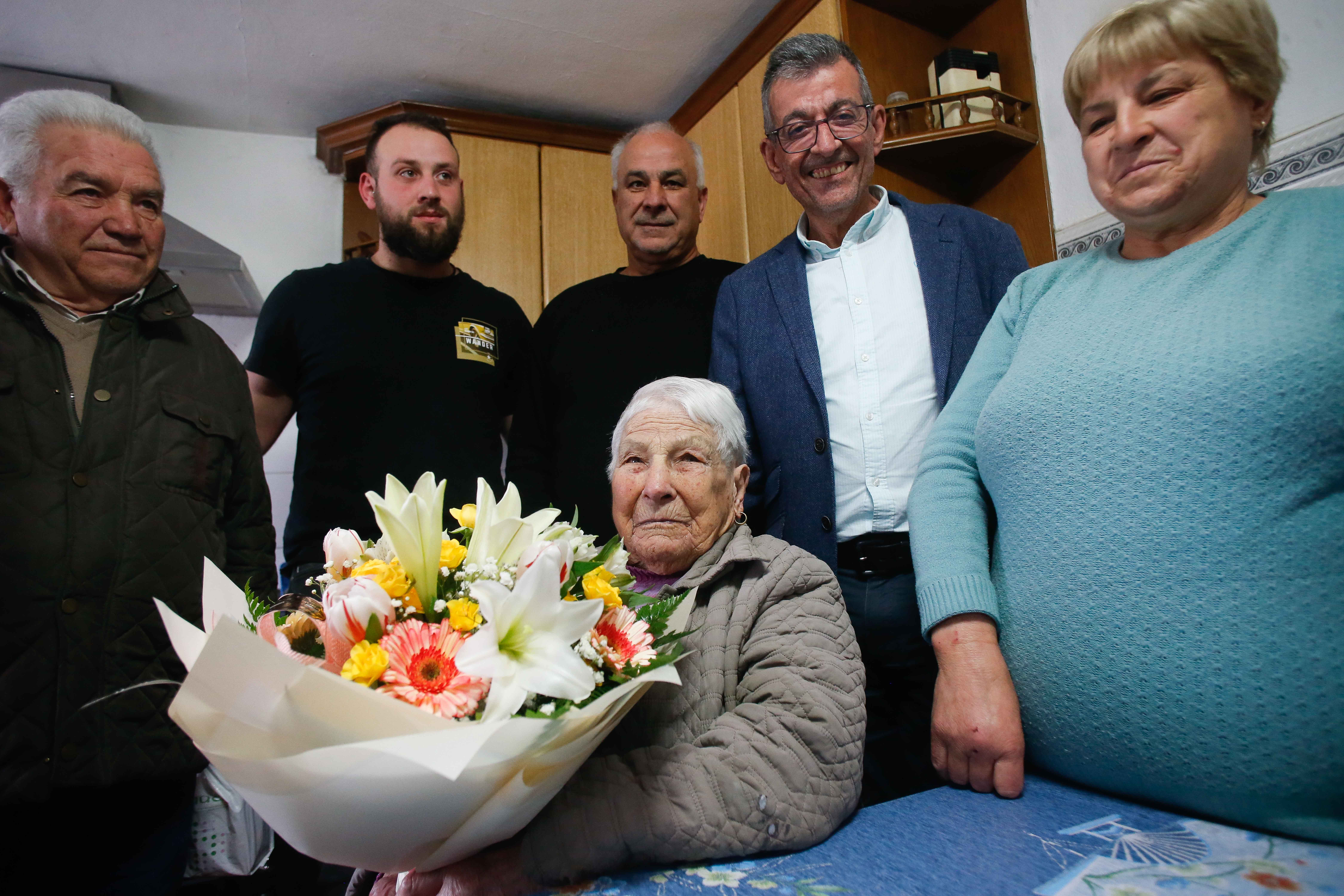Ermitas Fernández, vecina de Ceceda, en Doade (Sober), cumplió cien años. Para celebrarlo, se reunió con sus familiares y recibió la visita del alcalde Luis Fernández Guitián, que le entregó un regalo institucional. Ahora, el Concello de Sober cuenta con diez centenarios: siete mujeres y tres hombres.