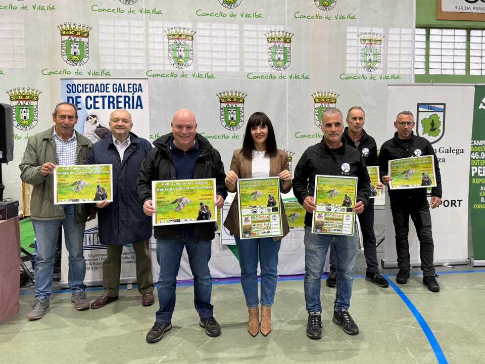 La presentación de la edición número 22 del Campeonato Gallego de Cetrería se celebró hoy en Vilalba. Se trata de una iniciativa deportiva y ambiental de referencia en Galicia que se desarrollará este fin de semana entre Vilalba y Cospeito. En el acto participaron Marta Rouco, alcaldesa de Vilalba; Francisco González, presidente de la Sociedade Galega de Cetraría; Ignacio Orge, delegado de Cetrería de la Federación Galega de Caza; Juan Antonio Pena, vicepresidente del Tecor Terra-Chá; y Marcos Troncoso, vicepresidente de la Sociedade Galega de Cetraría.