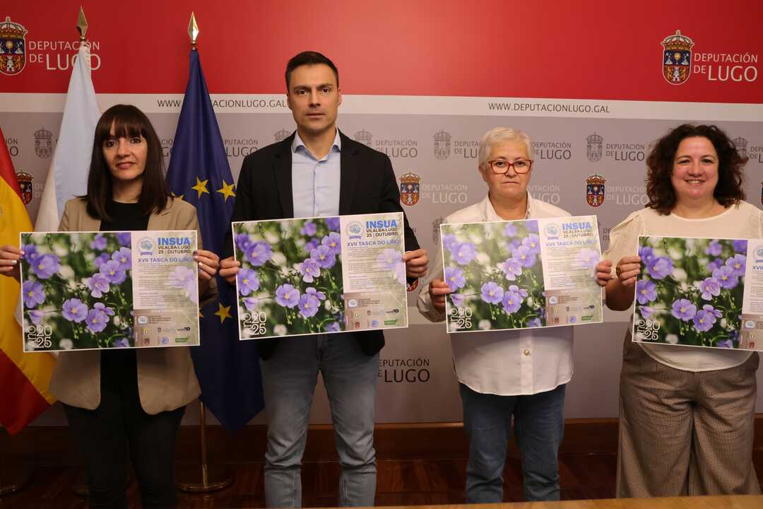 La parroquia vilalbesa de Insua acogerá el sábado 25 de octubre la decimoséptima edición de la Tasca do Liño, una cita que pone en valor el trabajo artesanal y el patrimonio inmaterial del rural lucense. Pablo Rivera, deputado de Promoción Económica e Social, junto a la alcaldesa Marta Rouco y Lourdes Otero, presidenta de la Asociación de Mulleres Rurais de San Bartolomeu de Insua, presentaron la iniciativa. La Deputación de Lugo colabora con una aportación económica de 2.000 euros y con una exposición de trajes del Centro de Artesanía e Deseño (CENTRAD).