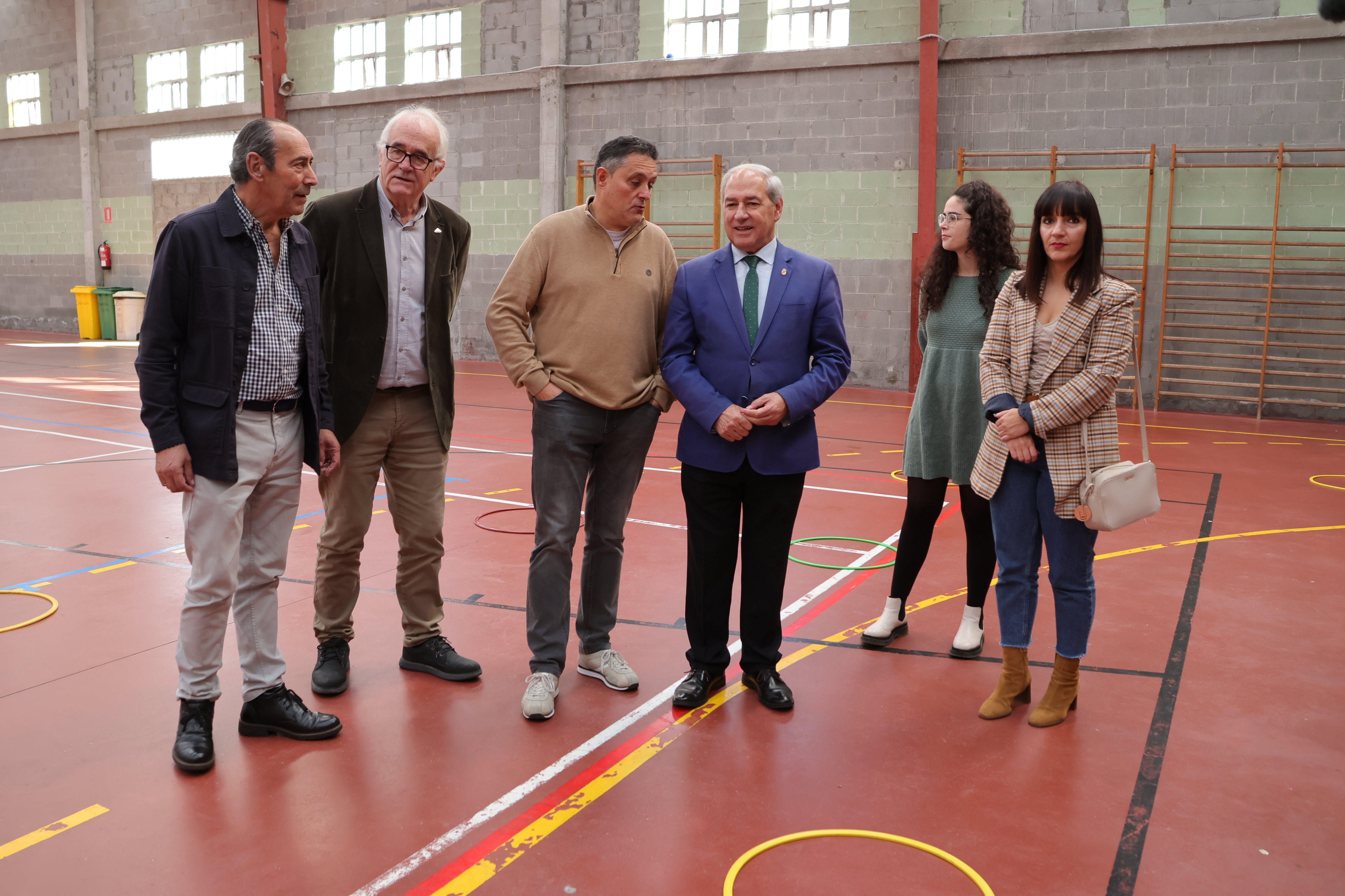 A continuación, visitaron el CEIP Manuel Mato Vizoso, donde se está llevando a cabo un proyecto de renovación integral del pavimento de la pista del pabellón, con una inversión de 73.502,73€. Este proyecto incluye el nivelado del suelo, la instalación de un nuevo pavimento deportivo de PVC y el marcado de las líneas para diversas disciplinas como fútbol sala, baloncesto y tenis. “Esta mellora permitirá que o pavillón teña as condicións óptimas de seguridade e comodidade para unha práctica deportiva segura e inclusiva,” señaló la Alcaldesa.